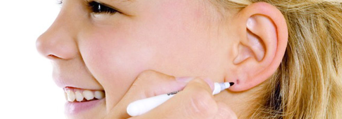 Auskaru ievietošanas vietu dakteris atzīmē ar sterilu flomāsteri, un vēlāk Jums būs iespēja apskatīt tos vēl pirms caurduršanas.