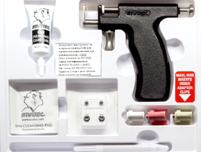 Auskari-adatas ir iepakotas atsevišķi, sterilos kārtridžos. To ievietošana STUDEX firmas “pistolē” iespējama nepieskaroties auskariem ar rokām.